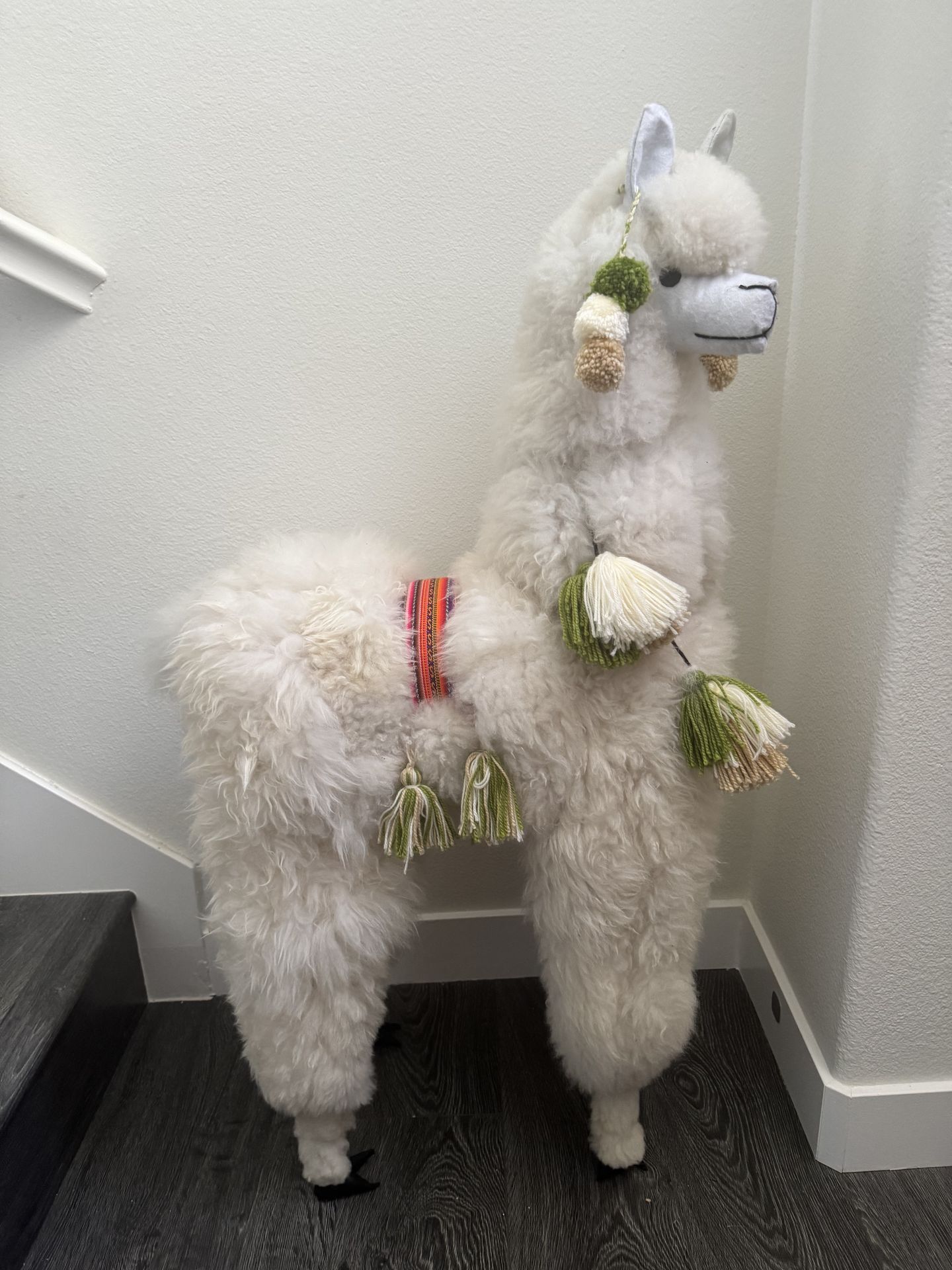 Handmade from Peru with real Alpaca Fur Used but hasn’t been tampered with. It was only placed in our babes nursery next to crib. In excellent condition. 45” tall / 24” wide