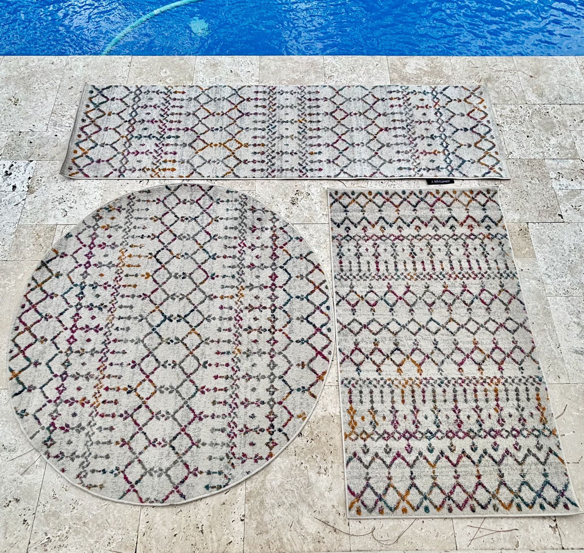 3 PC Jonathan Y Multicolor Moroccan Rug Set