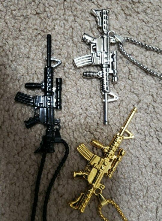 Men's Machine Gun Pendant Necklace Punk Biker Jewelry 3 Pcs