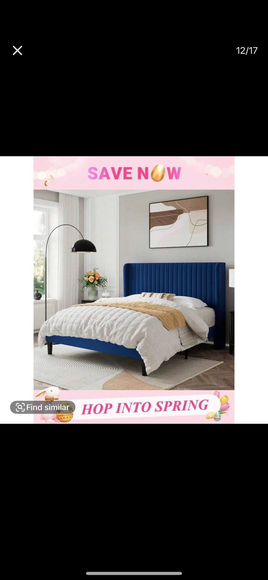Brand new bed still in the box. I ordered it and just don’t want it. It’s a royal blue bed, material is velvet.