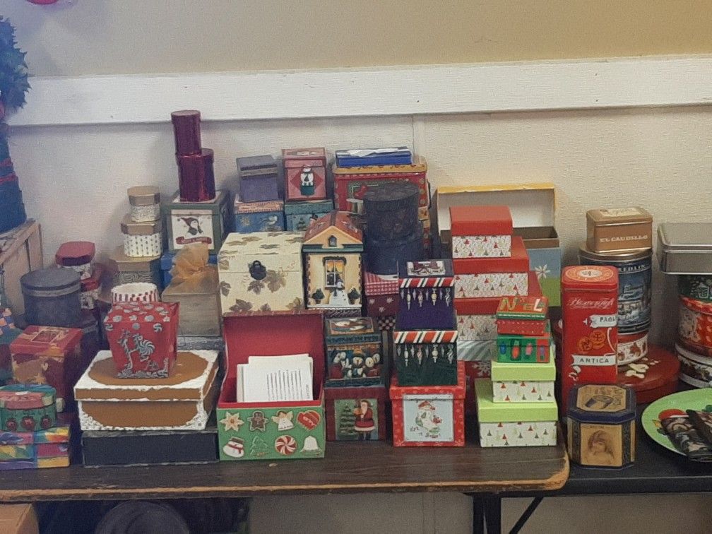 Lot of stackable Christmas and holiday boxes. Many shapes, sizes and colors.