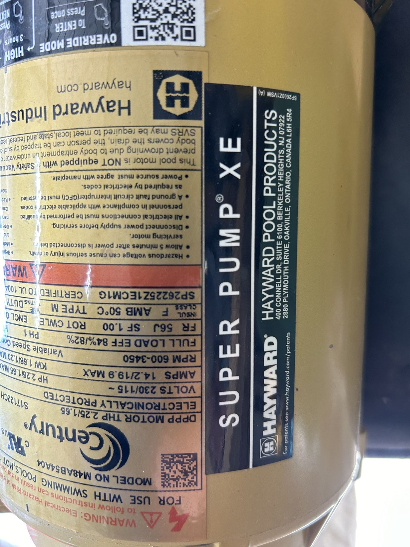 Hayward Super Pump Xe Variable Speed 230/115 V Pool Circulation Pump Motor