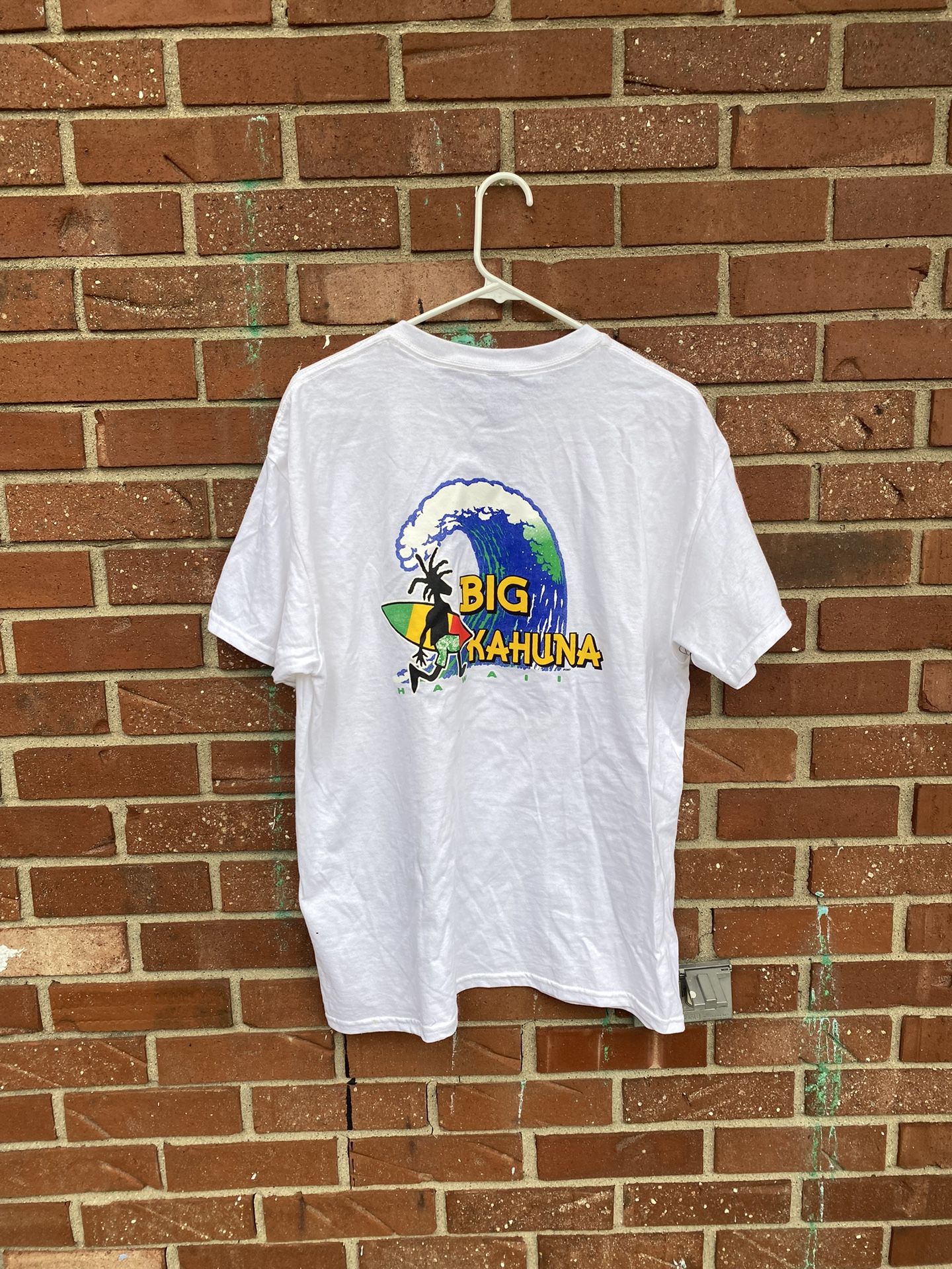 Nice White Big Kahuna T-shirt from Hawaii these were sold on the beach by vendors 100% cotton Garment has minor flaw