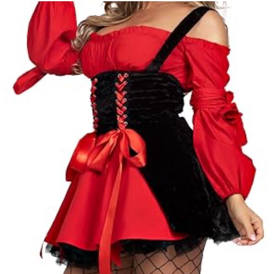 Sail the seven seas in style in the sexy Leg Avenue Vixen Pirate Wench Costume Set. This pretty privateer look features a velvet double lace up corset dress with peasant top and arm ties Show off that pirate booty with the curve-hugging corset style lace front, seductive off the shoulder peasant top and luscious lace trim To keep you comfortable even on long voyages, this ravishing raider dress is made with a curve-hugging cotton and stretchy velveteen