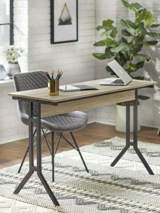 Modern Industrial Home Office Desk Light Wood Ir Dark Wood Metal Legs (New In A Box)
