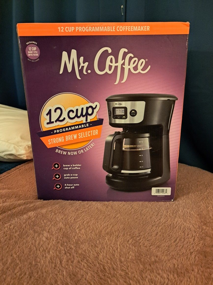 Twelve cup coffee , maker brand new, never been used. You can set it up the night before to go off the following morning.