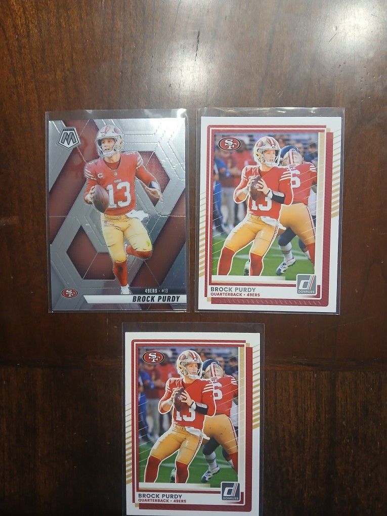 I have this 3 brock purdy base chrome & bases papers for sale im not looking I want $1 firm firm firm for all 3 offers will be ignored