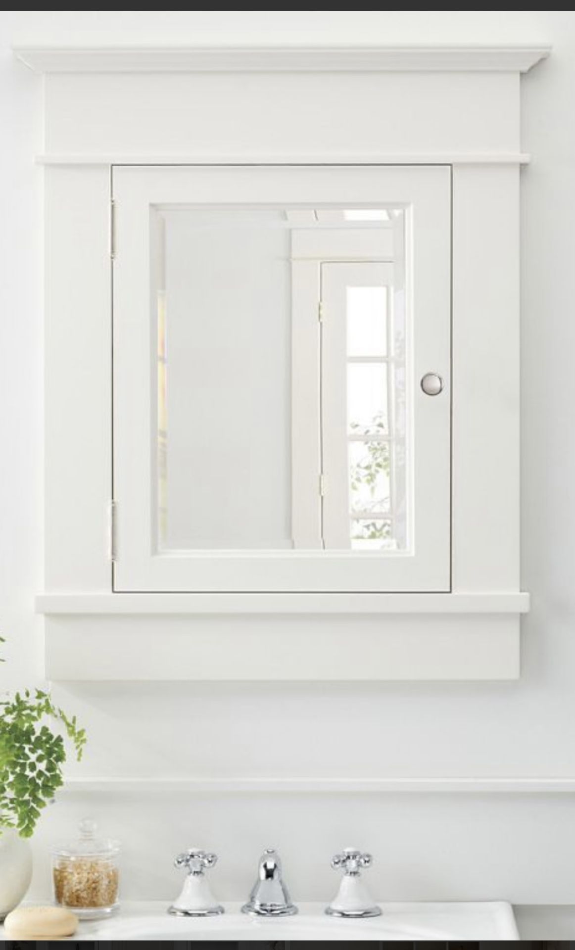 Unopened medicine cabinet from rejuvenation. In mint condition. White, left handed opening.
