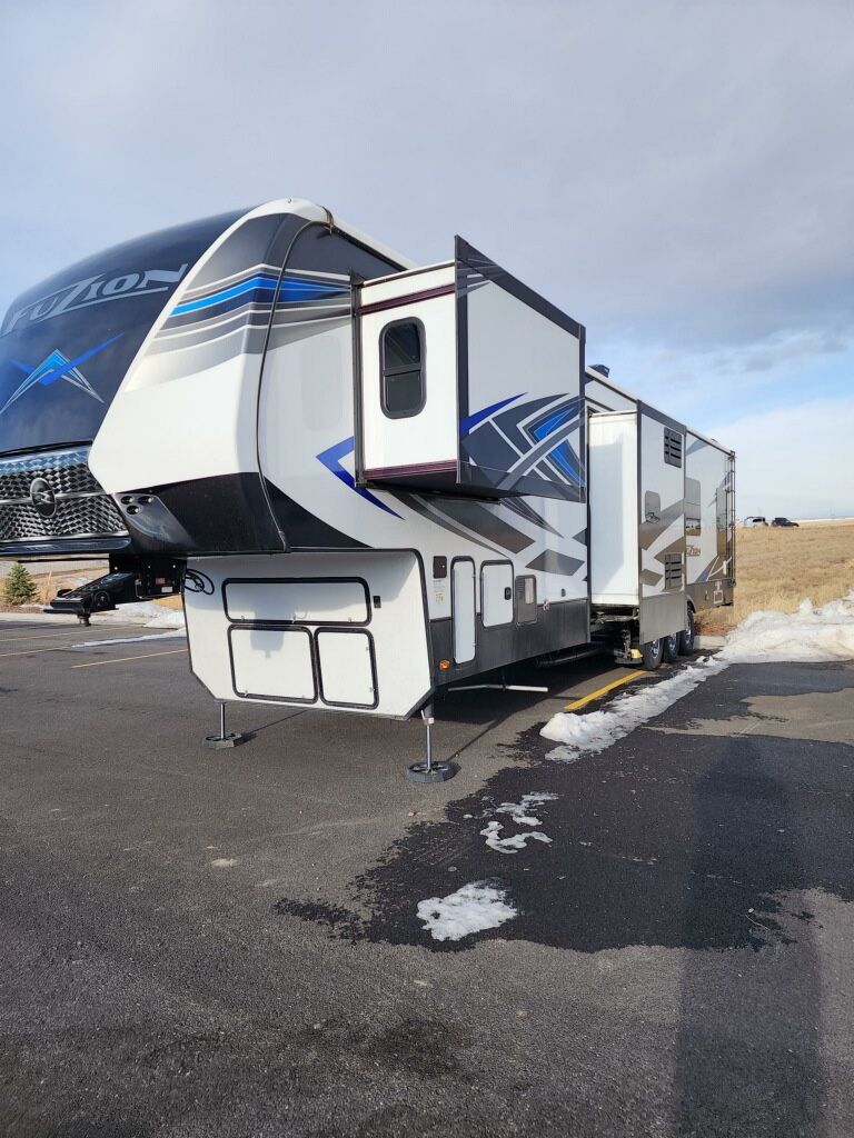 2021 Keystone Fuzion 419 5th wheel Toy Hauler for sale. 44’ long 13’5” tall 15’ garage Triple Axel 1.5 bath ST255/85R16E tires 106 gal fresh water 88 gal grey tank 88 gal black tank Dual LifePo batteries Solar panels Outdoor projector and speakers 2 propane tanks Washer and dryer Cummins Onan 5500 watt generator 3 A/C’s Located in Hugoton, KS Call/text for more info (contact info removed) Asking $68,000 obo ***MOTIVATED TO SALE!!!!*** ***MAKE ME AN OFFER!!!!***