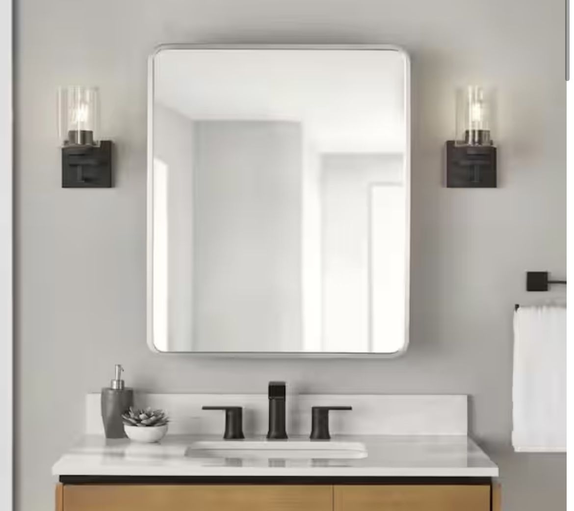 New-24 in. W x 30 in. H Rounded Corner Rectangular Brushed Nickel Medicine Cabinet with Mirror