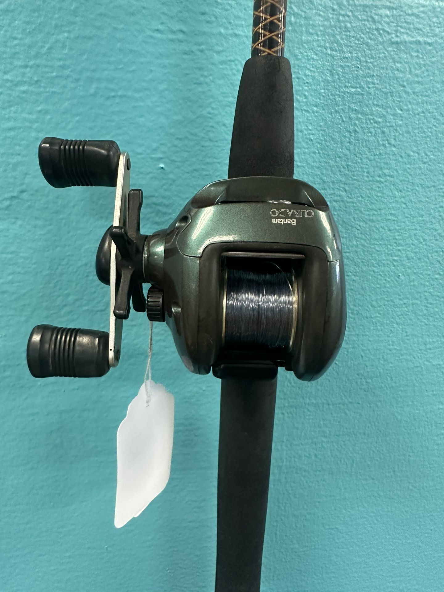 Shimano Bantam Curado CU-201 with black foam handle. Comes with Shakespeare ugly stick fishing rod.
