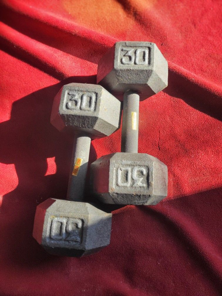 SET OF 30LB. HEXHEAD DUMBBELLS TOTAL 60LBs 11525 S HALSTED DUNKIN DONUTS/7111.S WESTERN WALGREENS 60$ CASH ONLY AS IS