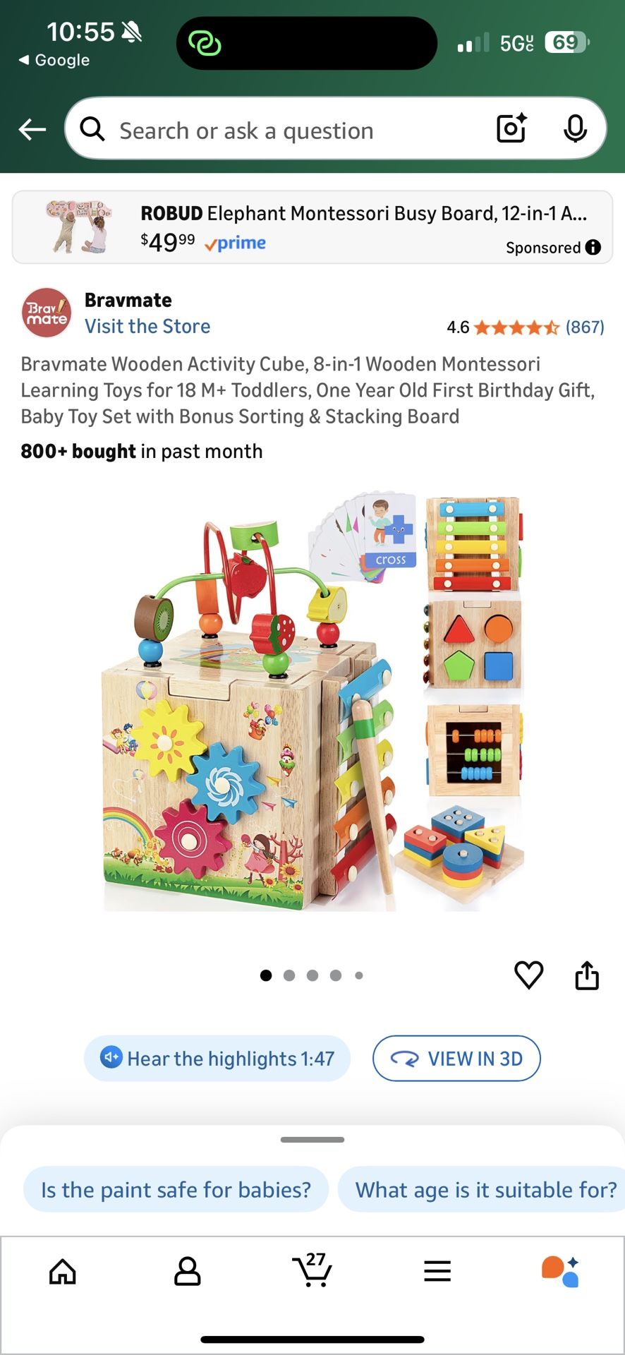 Bravmate Kids Wooden Activity Cube With Stacking Board