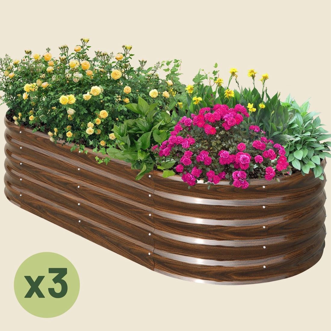 3-Pack 17" Tall 8x4 ft Modular Metal Raised Garden Bed