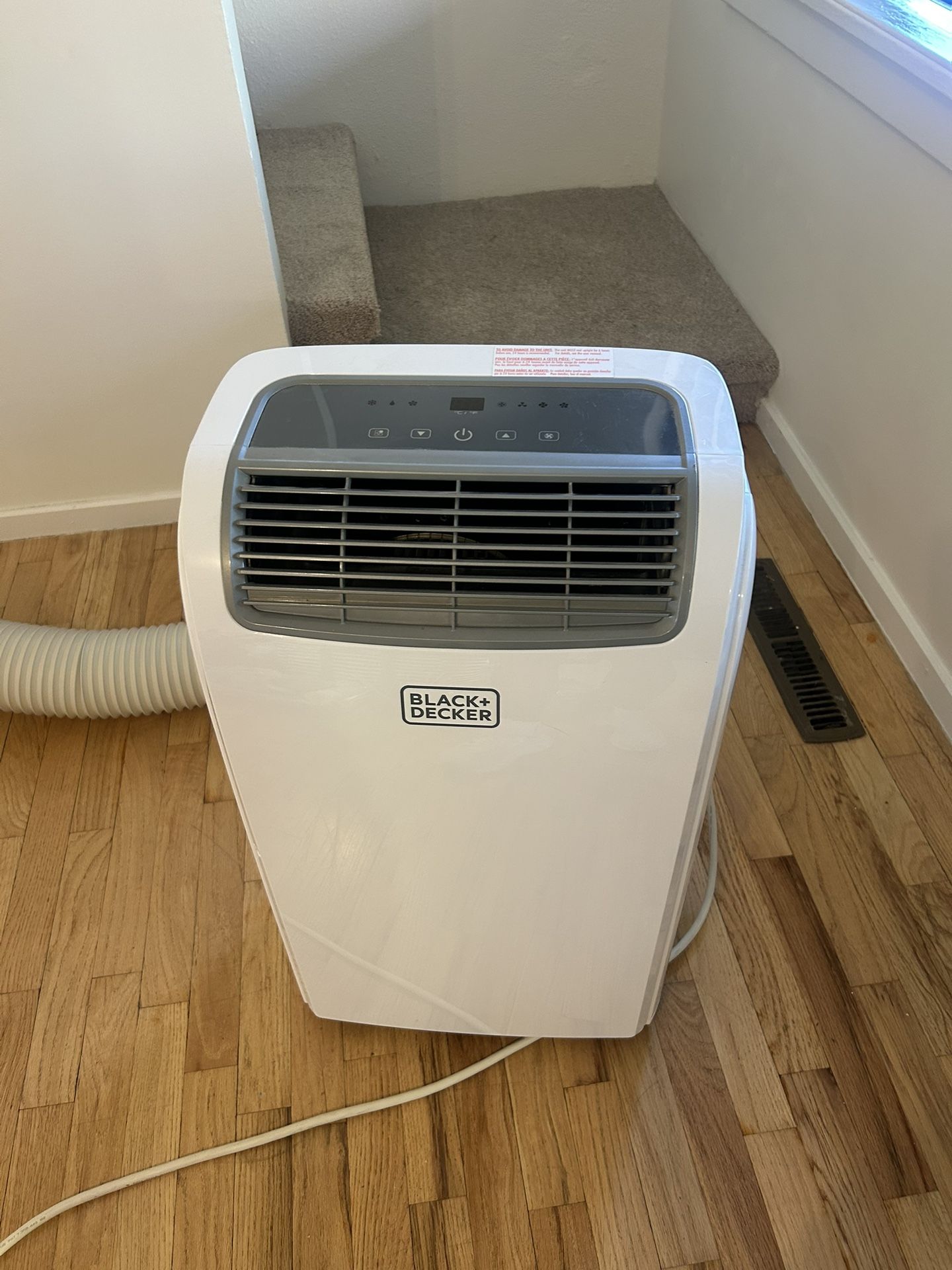 This is a lightly used Black and Decker portable air conditioner. 4,000 BTU covers up to 350sq ft. Detentions are: H: 27.9” W: 16.5” D: 11.7” Retails for $225 brand new. No remote. Window pieces are adjustable.