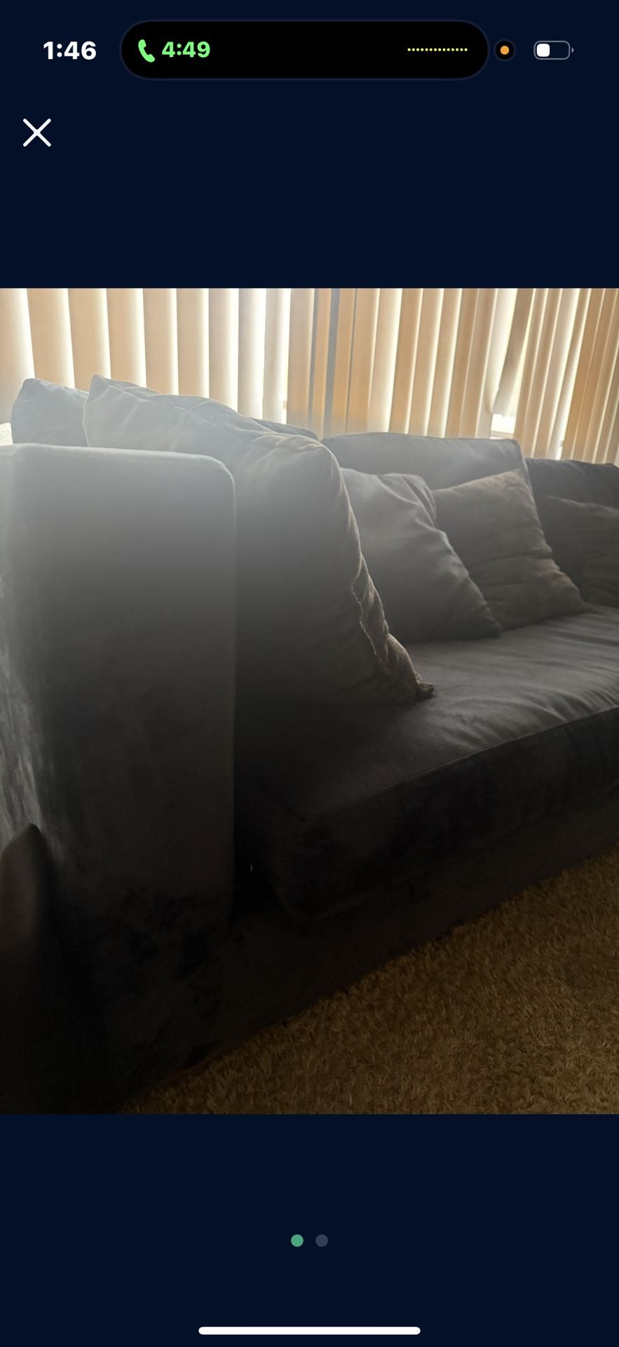 Fair condition bout for 450 well let go for 200 Navy blue suede couch