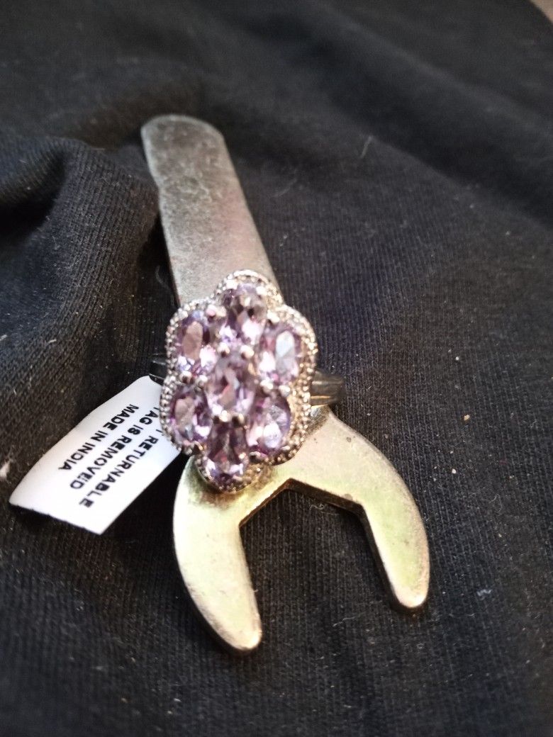 Bolivian amethyst 2.94 ct stainless steel size six ring
