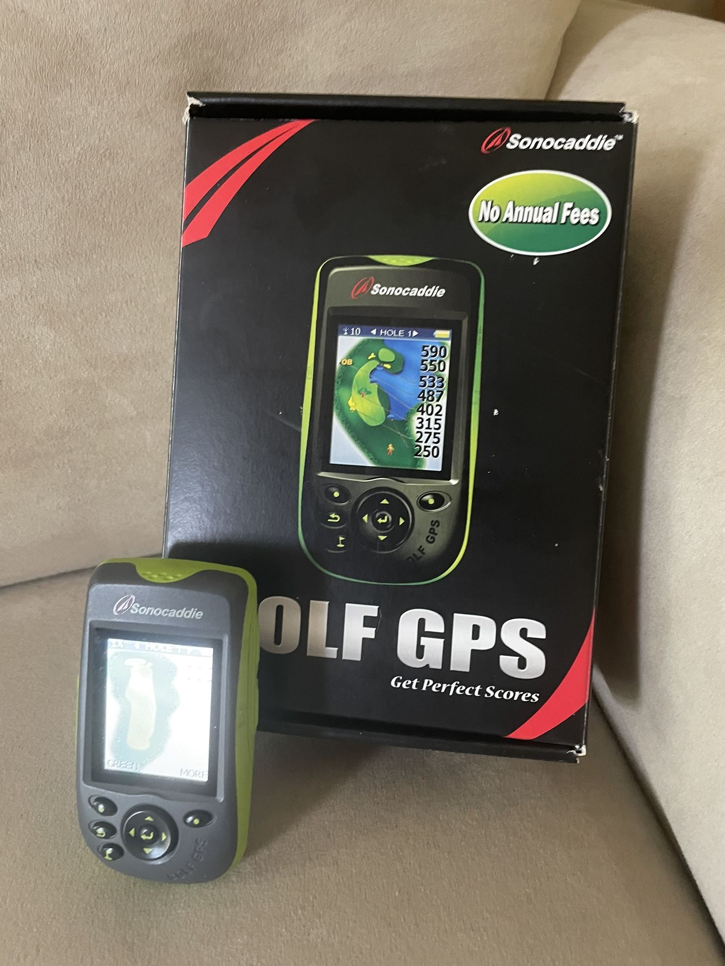 Sonocaddie model V300 golf gps in excellent condition. Includes charger and cable, protective cover, and instructions. Tested and fully functional.