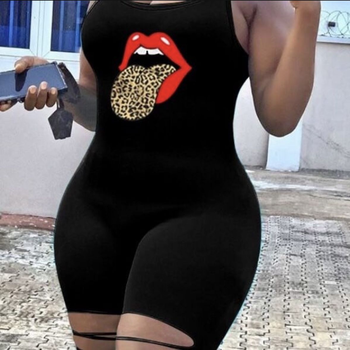Product Description Size: Medium Material: Polyester Style: Casual Pattern Type: Lips Printed Sleeve Style: Spaghetti Strap Type: Basic Fit Type: Skinny Neckline: U Neck Elastic: Yes(Elastic)