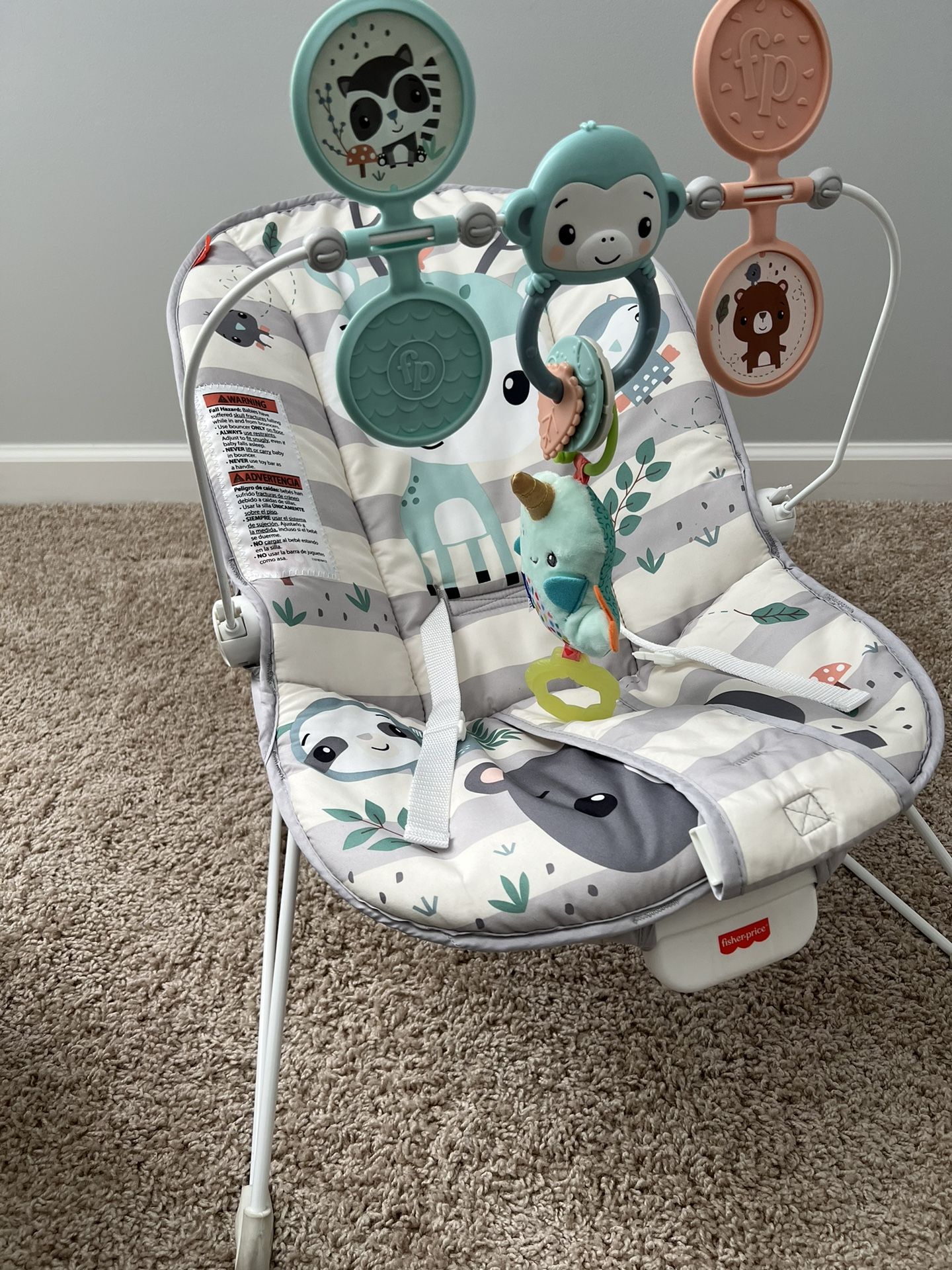 Very good condition in a smoke free pet free environment Removable toy bar Gentle vibrations help calm your baby Machine-washable seat pad Non-skid feet