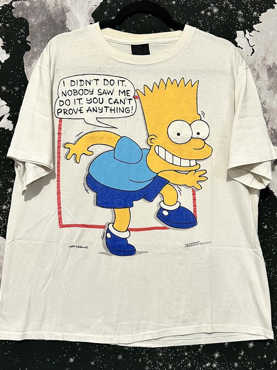 The Simpsons Bart ‘I Didn’t Do It…’ funny cartoon television series character bubble quote shirt, color is white with front graphic. Preowned condition *Yellowing on collar , discoloration areas under arms, front towards bottom & upper back* Sz. XL Measurements (23”x28”)