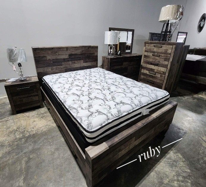 39$ Down Payment| Multi Gray Derekson Bedroom Furniture Set| Dresser, Mirror,Bed, Nightstand, @ Fast Delivery 🚚