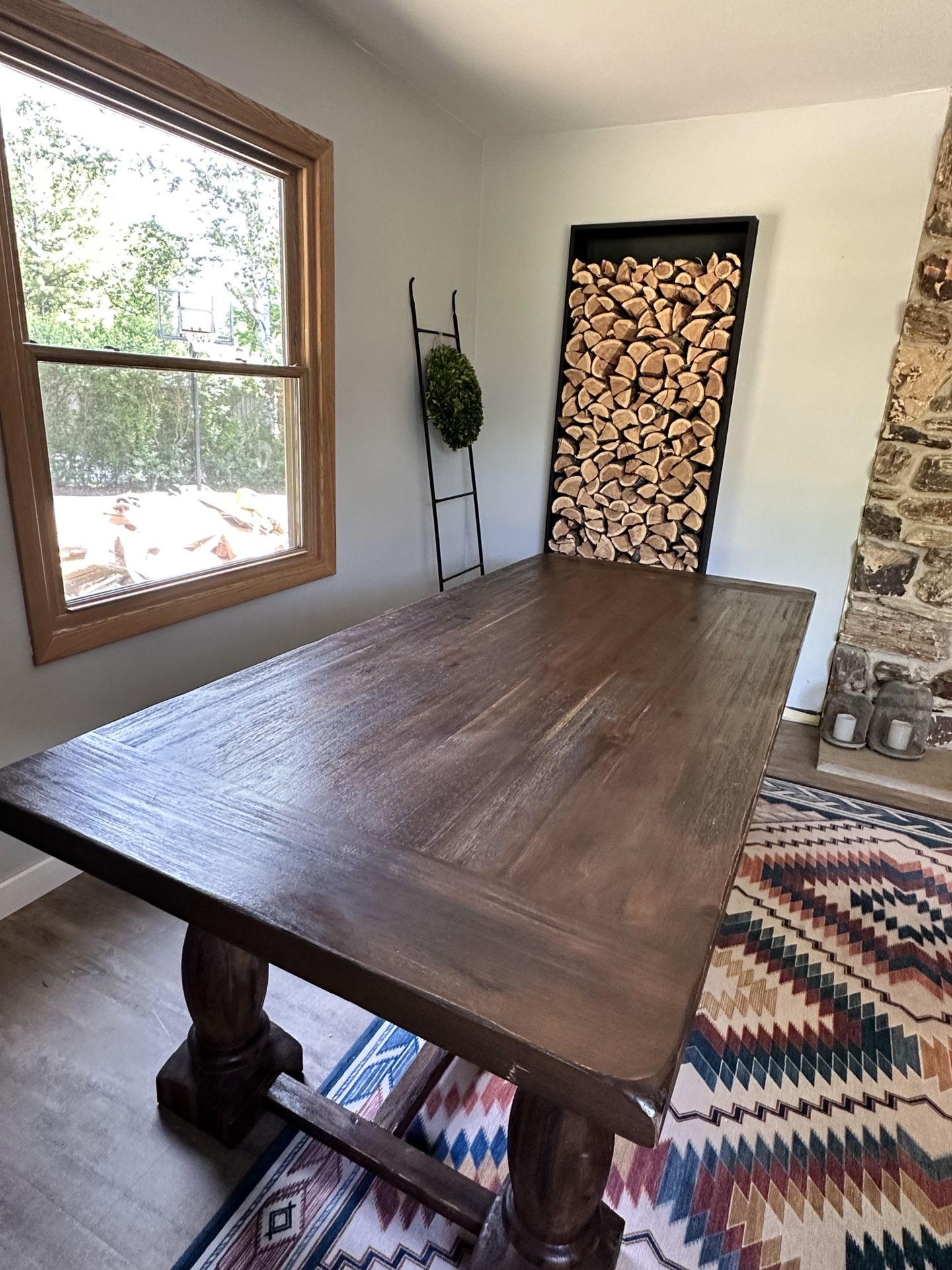 Beautiful and sturdy dining table from World Market. It can comfortably accommodate 8, or 10-12 if seated cozily. :) There are some signs of use but overall in good condition. We bought it for $799.99. Selling because we’d like to turn our dining room into a family room. Dimensions: Length: 86 1/2 in Width: 39 3/8 in Height: 30 1/2 in We can disassemble and help load on your truck. Pick up from Brookfield, WI.
