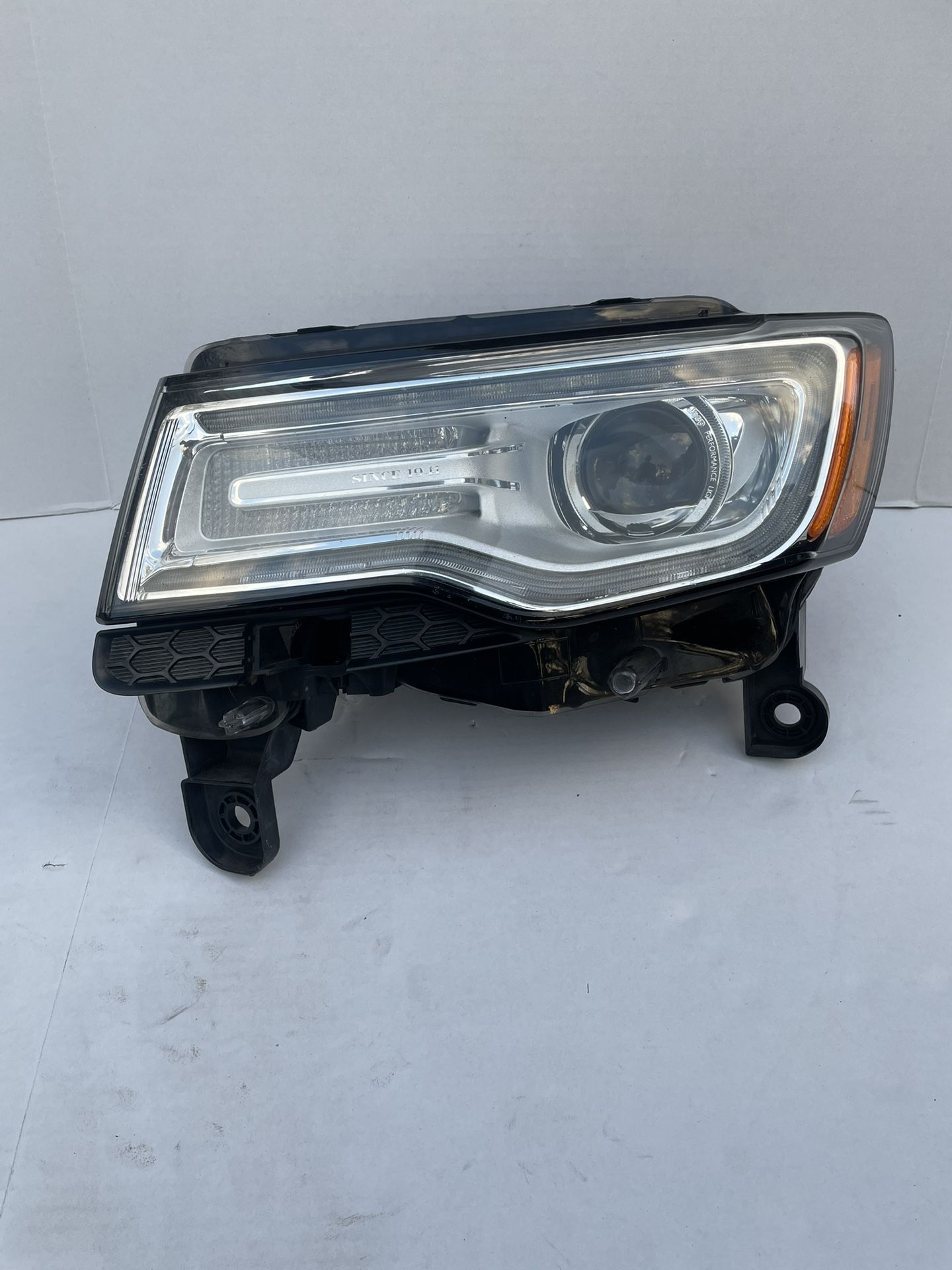 Used OEM Xenon Left Headlight Assembly For All 14-16 Jeep Grand Cherokee’s. Left Headlight Assembly Is In Great Condition With No Broken Tabs Or Damage To The Lens. Does Not Include Bulb And Ballast.