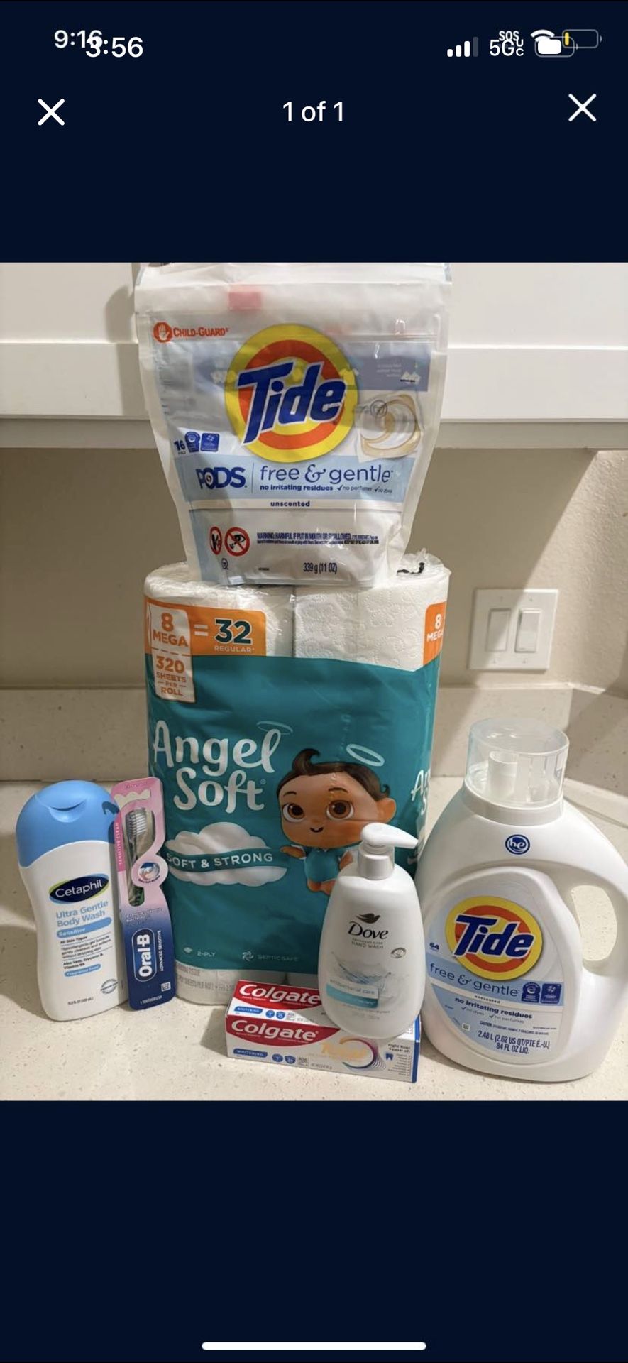 Cetaphil body wash for sensitive skin 8=32 mega angel soft tp Tide free and gentle 16 ct Tide free and gentle 84 oz Dove hand wash antibacterial wash Colgate total toothpaste See π my other listings for more π