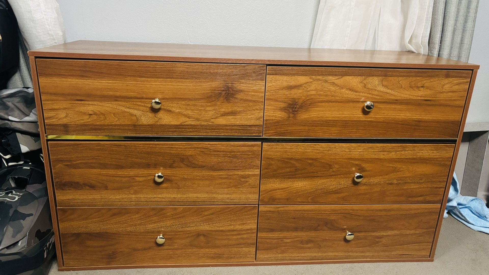 SIX DRAWER DRESSER AND OR TV STAND IN GOOD CONDITION COMES WITH BOTTOM LEGS ASKING $100 obo