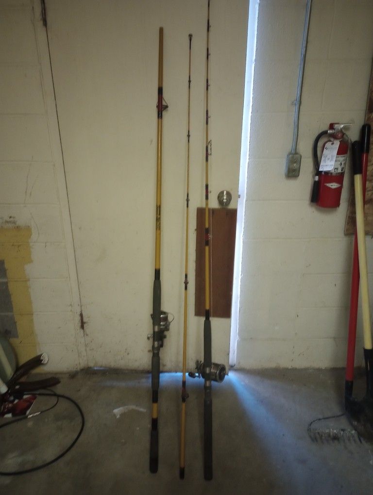 2 ugly stick tiger model bwc 220 one is 6 ft 6 and the other is 12 ft both with fishing reels on them. The fishing poles reels are Daiwa Sea lion 50 H and Garcia 280. Both for $92.00