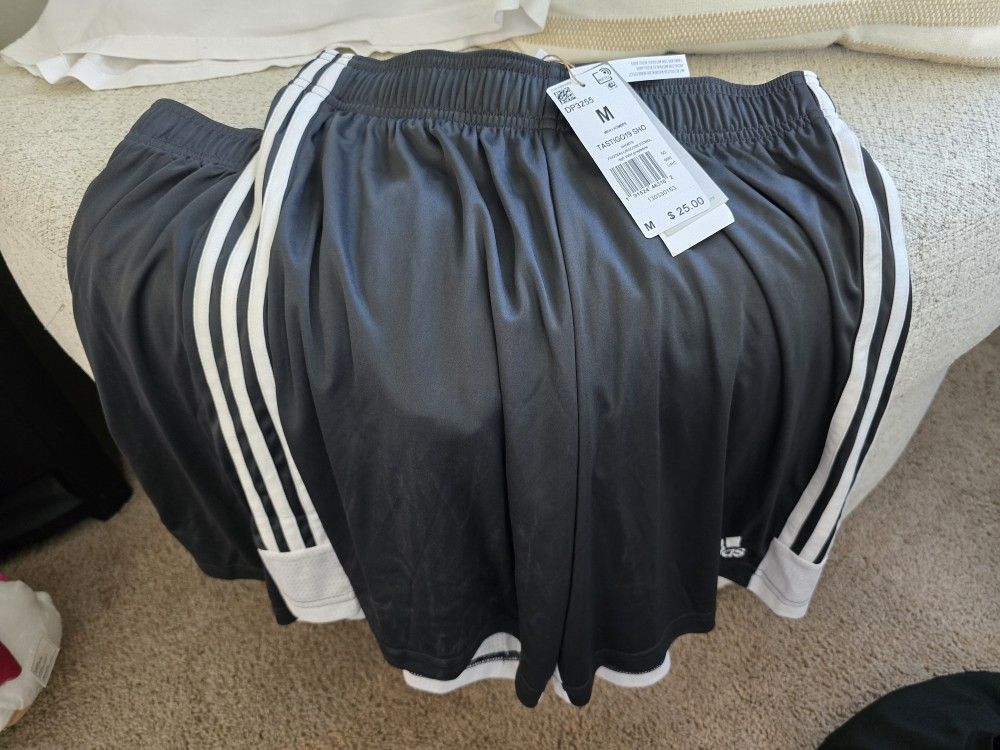 2 Nike Shorts size Boys XL (Blue and Black) 2 Adidas Shorts size Mens M (Both Grey) Brand new with tags. $10 each.