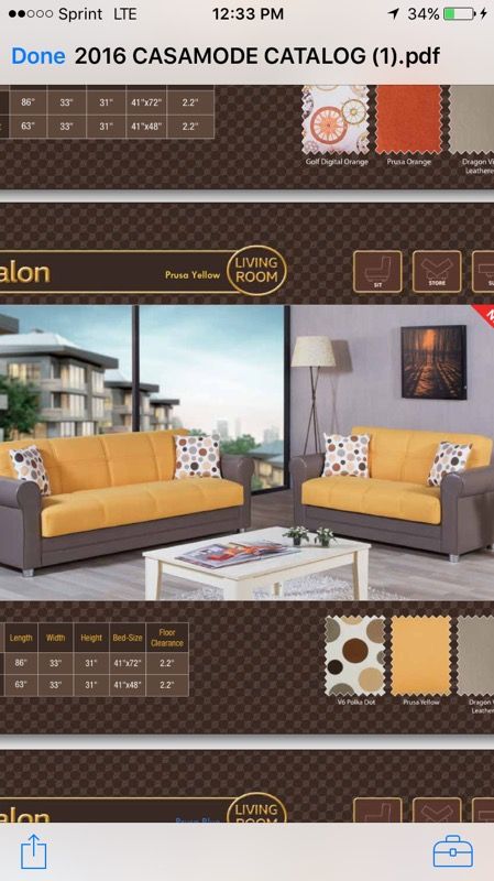 Convenient 2pc set sofa bed with storage. It comes in 6 different colors