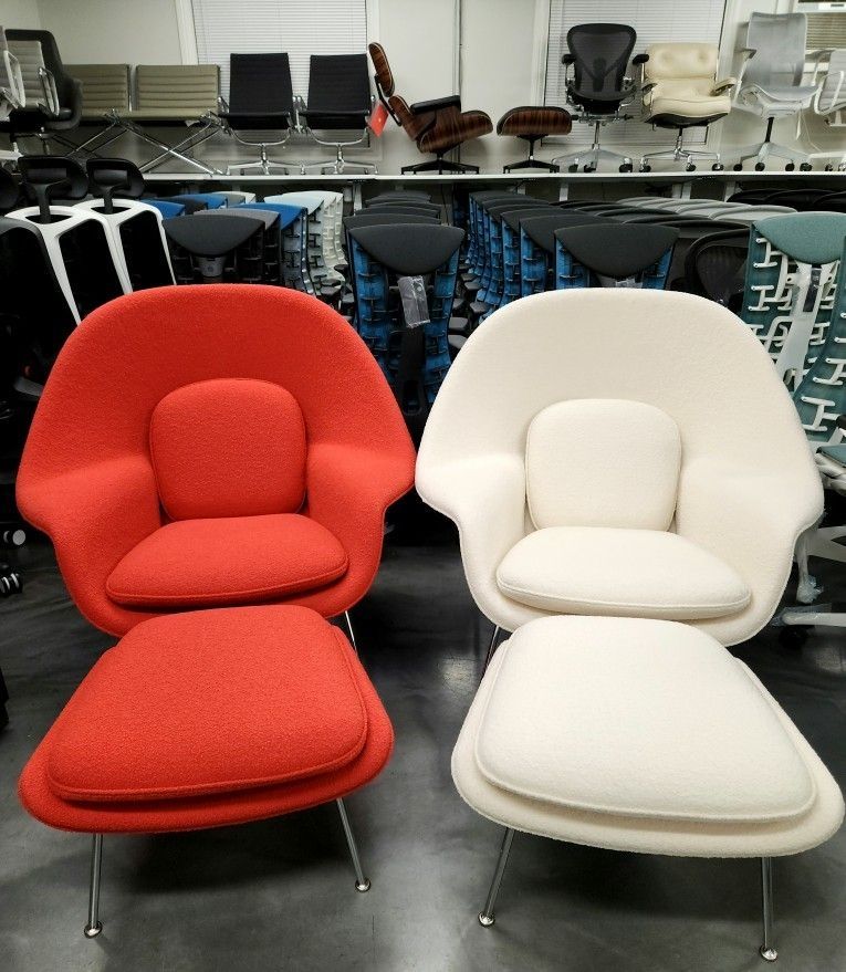 🔥BRAND NEW!🔥100% AUTHENTIC KNOLL STUDIO EERO SAARINEN WOMB CHAIRS RED AND WHITE AVAILABLE BOTH COME WITH OTTOMANS 🔥RETAIL $9000🔥OUR PRICE $5995🔥