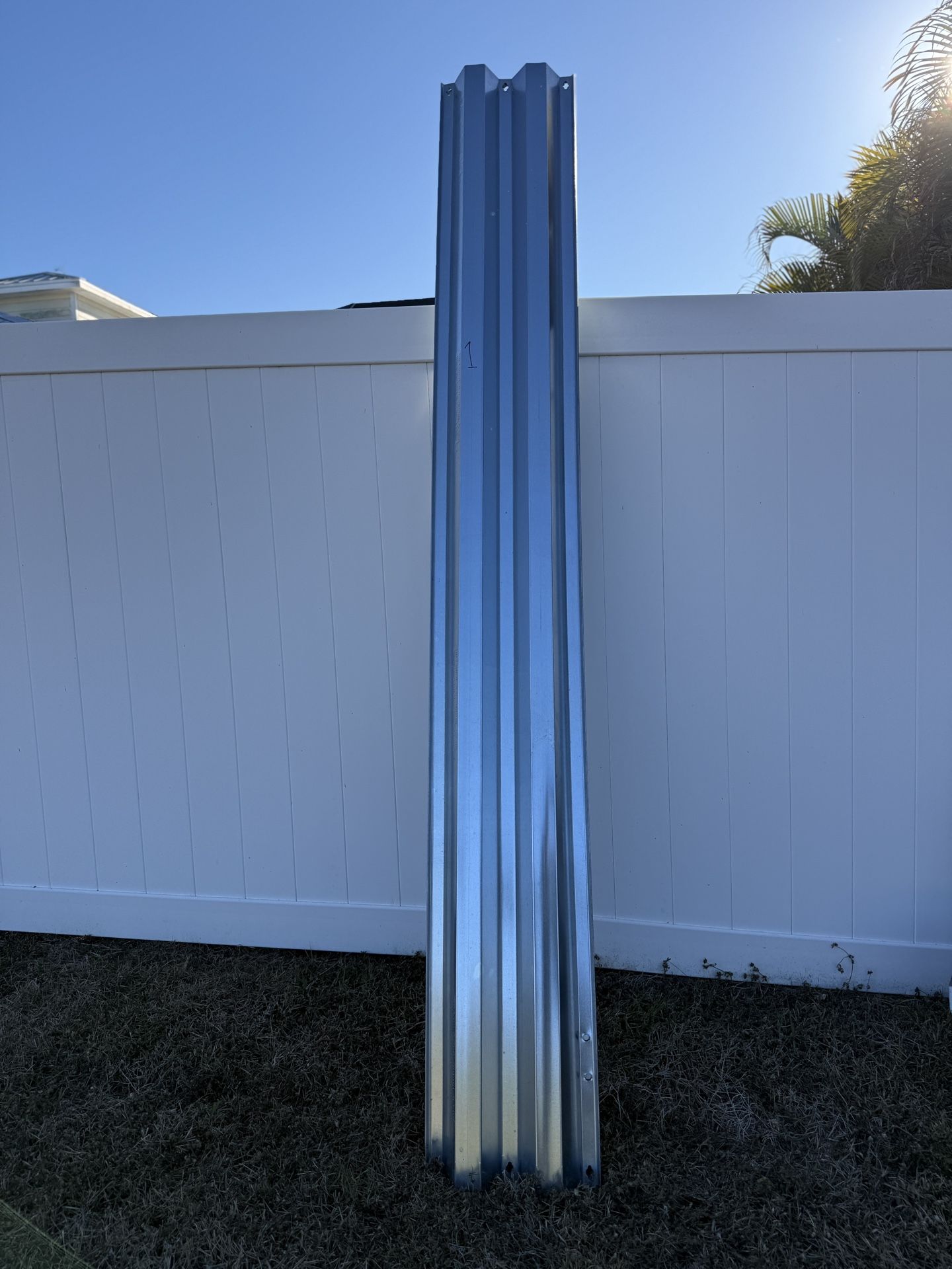 Hurricane shutters for a large entry door opening. 5 total panels and bottom track included (see photo). Measurement of each panel is 102 1/2” tall & 14" wide and are designed to have the attachment holes on the top and bottom when in use. These panels will cover and secure a normal exterior door. The shutters have no impact damage and are in great condition. They are also designed with a handle so you can attach and detach an exit panel from inside your home for safety