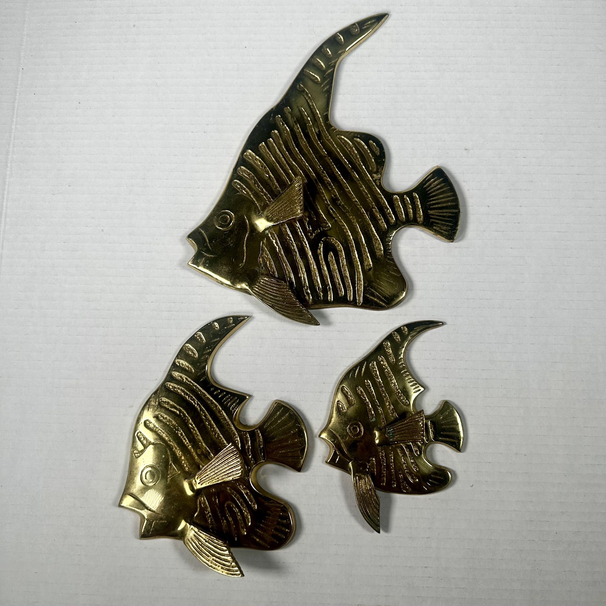 Enhance your space with this elegant gold brass fish wall decor set of 3, small medium large. Perfect for adding a touch of funky sophistication to any room. Retro, vintage, MCM, 1980s, 1970s, angelfish ▪️size: see measurements in pictures ▪️condition: excellent vintage condition. Minor tarnish, see pictures. Offers welcome! Cross-listed Smoke free, clean, pet friendly home. No returns for sizing or fit. Follow us on IG:@humble.toad