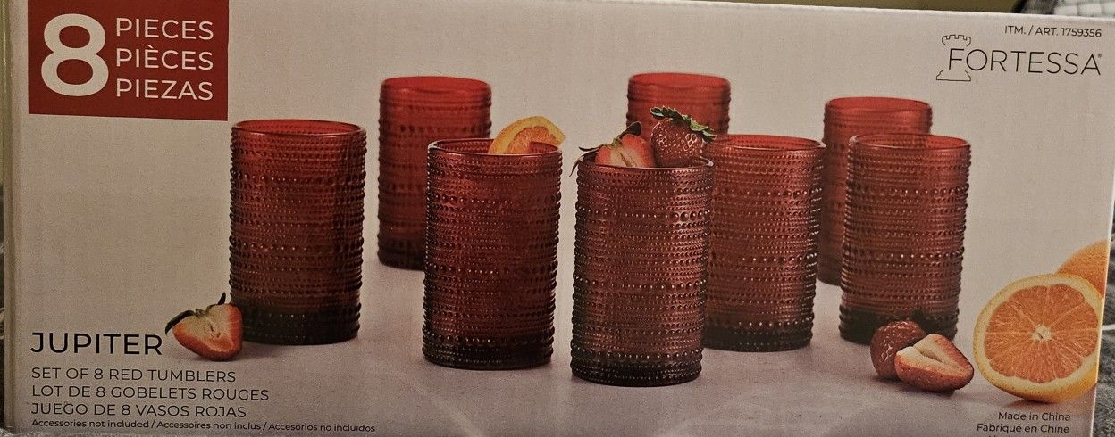 Jupiter Fortress red glasses are the perfect festive touch for any holiday party. Their vibrant red hue instantly brightens up your table, while the durable, elegant design makes every celebration feel a little more special. Raise a toast in style—these standout glasses are made for memorable toasts and joyful holiday gatherings . Brand new never used still in original packing . Original price is $70.00, compare with Amazon.