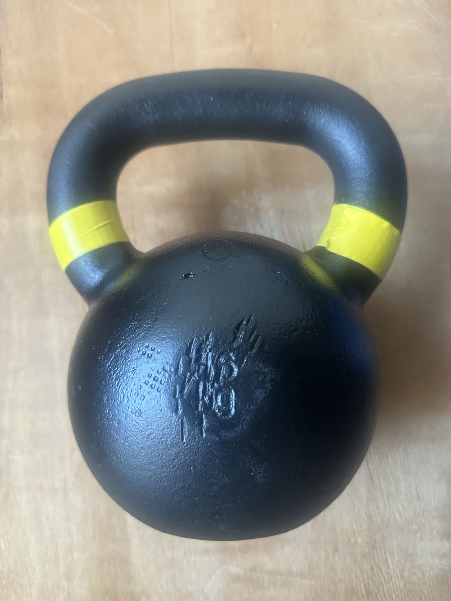 RKC 16kg kettlebell. It recently got refinished. The yellow bands are just duct tape. Price is firm!