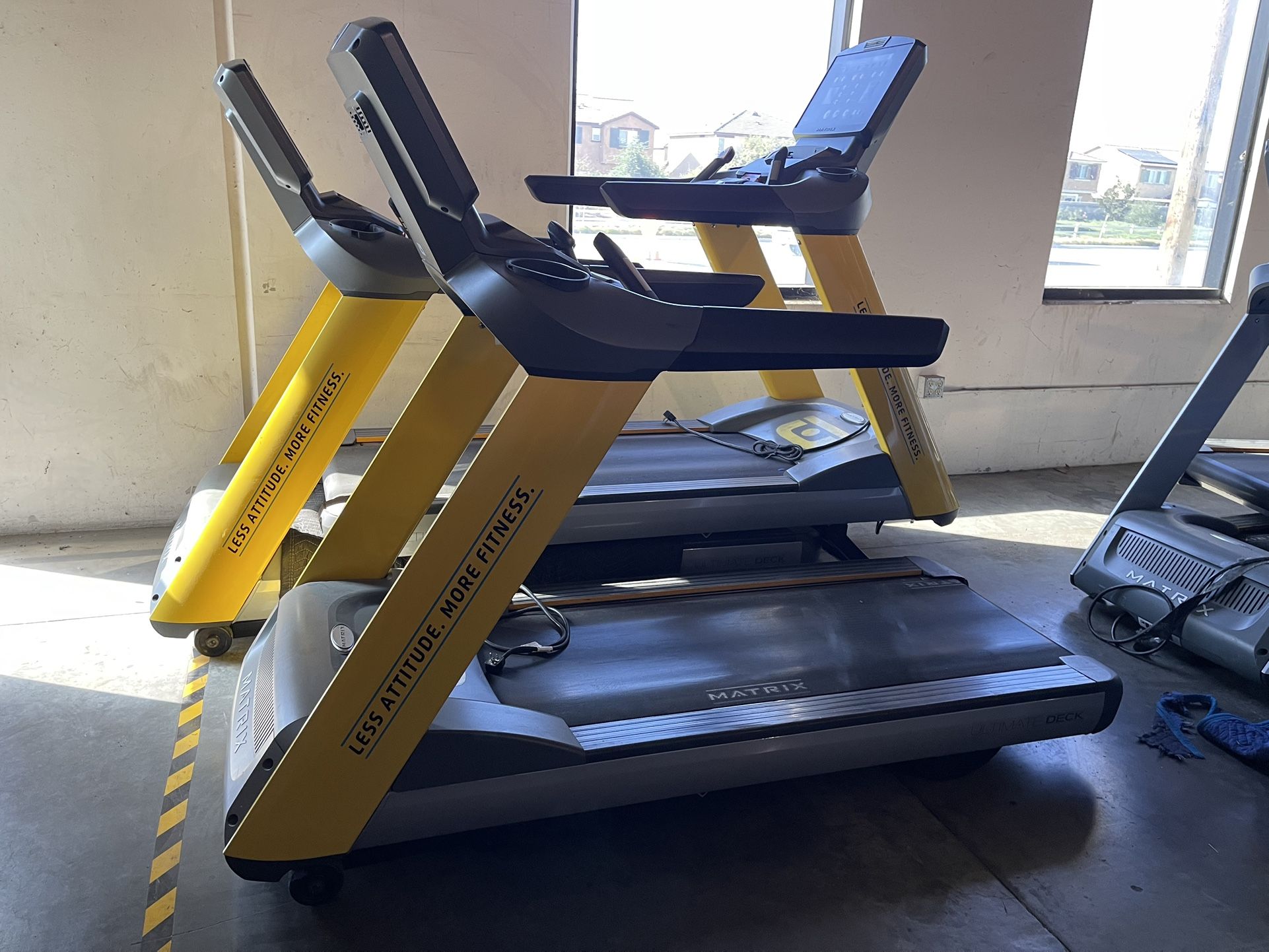 WATER ROWERS $800 SPIN BIKES $600 MATRIX SILVER TREADMILLS $2000 YELLOW $1200 BULLET PROOF ISOLATOR $600 BOSU BALLS $100 MATRIX STEP MACHINE $1800 MATRIX ELLIPTICALS $1200 TECHNO GYM STATIONARY BIKE $1600 MATRIX STAIR CLIMBERS $3000 TECHNO GYM KENISIS ONE $6000 IMPORT BUMPER PLATES $1.70lb US BUMPER PLATES $1.95lb OLYMPIC BARBELL COLLARS $15 a pair AGILITY FIT BARS $3lb TRAINING VEST $80ea 10lb VEST PLATES $30ea BUMPER PLATES LYNX $1.70lb WRIGHT $1.95lb ZERO SM400 3 N 1 SMITH MACHINE $4500 BENCH, PLATES, BAR BUNDLE $4999 SM500 3 N 1 SQUAT RACK $6000 LYNX 2 N 1 FUNCTIONAL TRAINER $3800 FUNCTIONAL TRAINER $2999 STAIR MASTER $2999 GYM MIRRORS 4x6’ $180ea HIGH COMPRESSION GYM MATS 39”x39” 3/4” thick $70ea Available in BLACK, n GREY LOCKING CLIPS $2 ea BODY SOLID quad n hamstring Leg developer. Olympic n standard plate loaded system. $450 ADJUSTABLE DUMBBELLS 9-50lb $350 a pair 9-80lb $500 a pair WEIGHT STANDS $100 MACES 10-40lbs $3lb TRAINING HAMMERS 10-30lbs $3lb INDIAN CLUBS 5-20lb $3lb KETTLEBELLS $1.45lb KB’s 5-50 lb 5lb increments DUMBBELLS $145lb RUBBER HEX 5-100lb ALL NEW!! 3/4” 39”x39” COMPRESSION MATS $70ea 3/4” 4x6’ GYM MATS $75ea. FUJI MATS 3/4” $135ea 1.5” $155ea. 2” $165ea SPORTS TURF contact for pricing 4’ BUMPER CART $220 6’ BUMPER CART $300 BODYKORE HIP THRUST TRAINER $1800 in box Body balance boards $125ea. Prowler Push Sled $240 3 n 1 12x14x16” PLYO boxes $30ea.. Adjustable Dumbbell handles 1” standard $12 a pair Cable machine attachments $10-60ea. Foam rollers $5-20 1” standard plates $1lb Tibialis machines $120ea Punching bags $150-195 Wrecking balls $220 Boxing gloves $55-80 Wraps $12