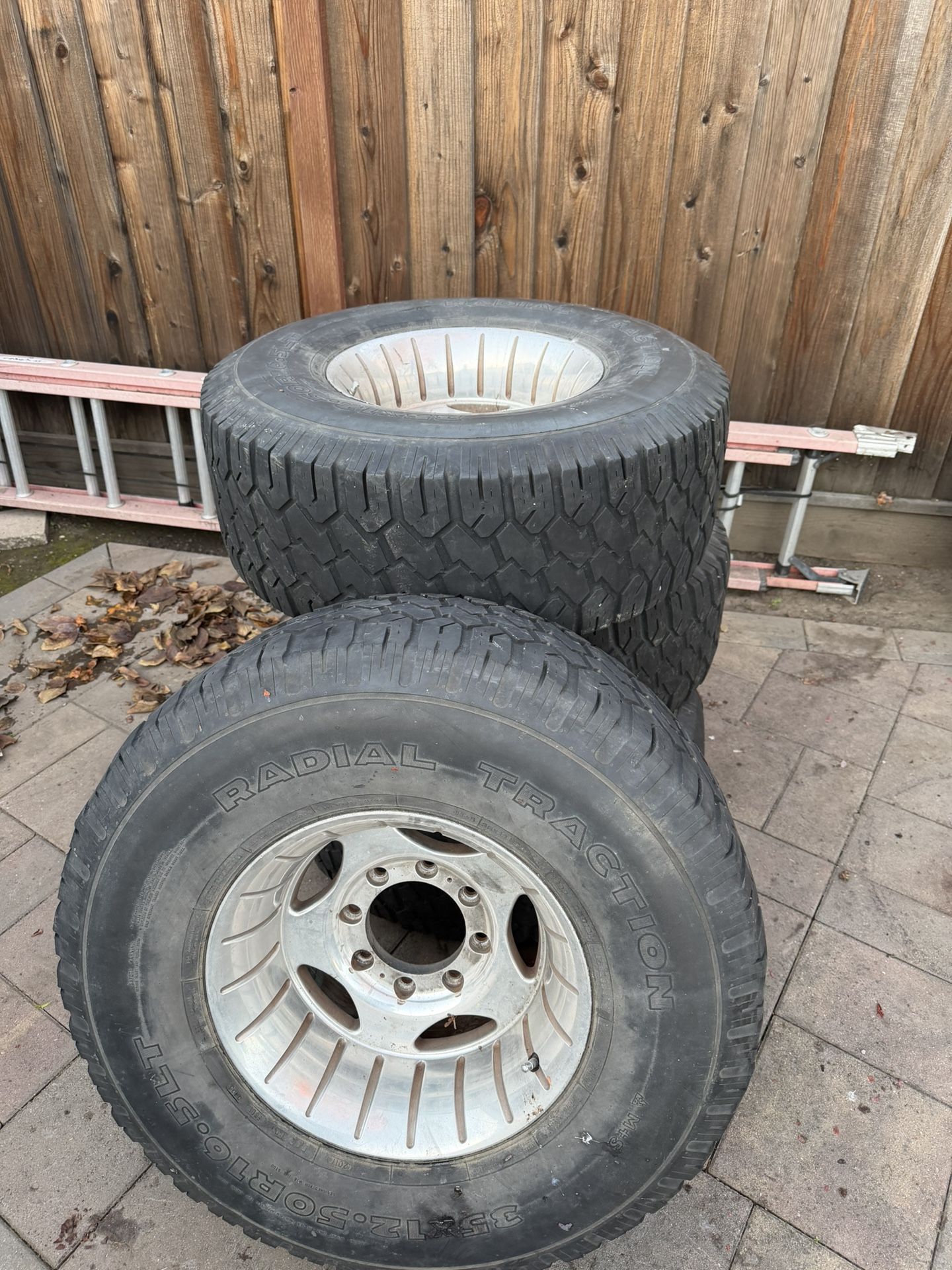35x12.5Rx16.5LT 8 lug TREAD and WHEELS in decent shape Moving: Priced to sell
