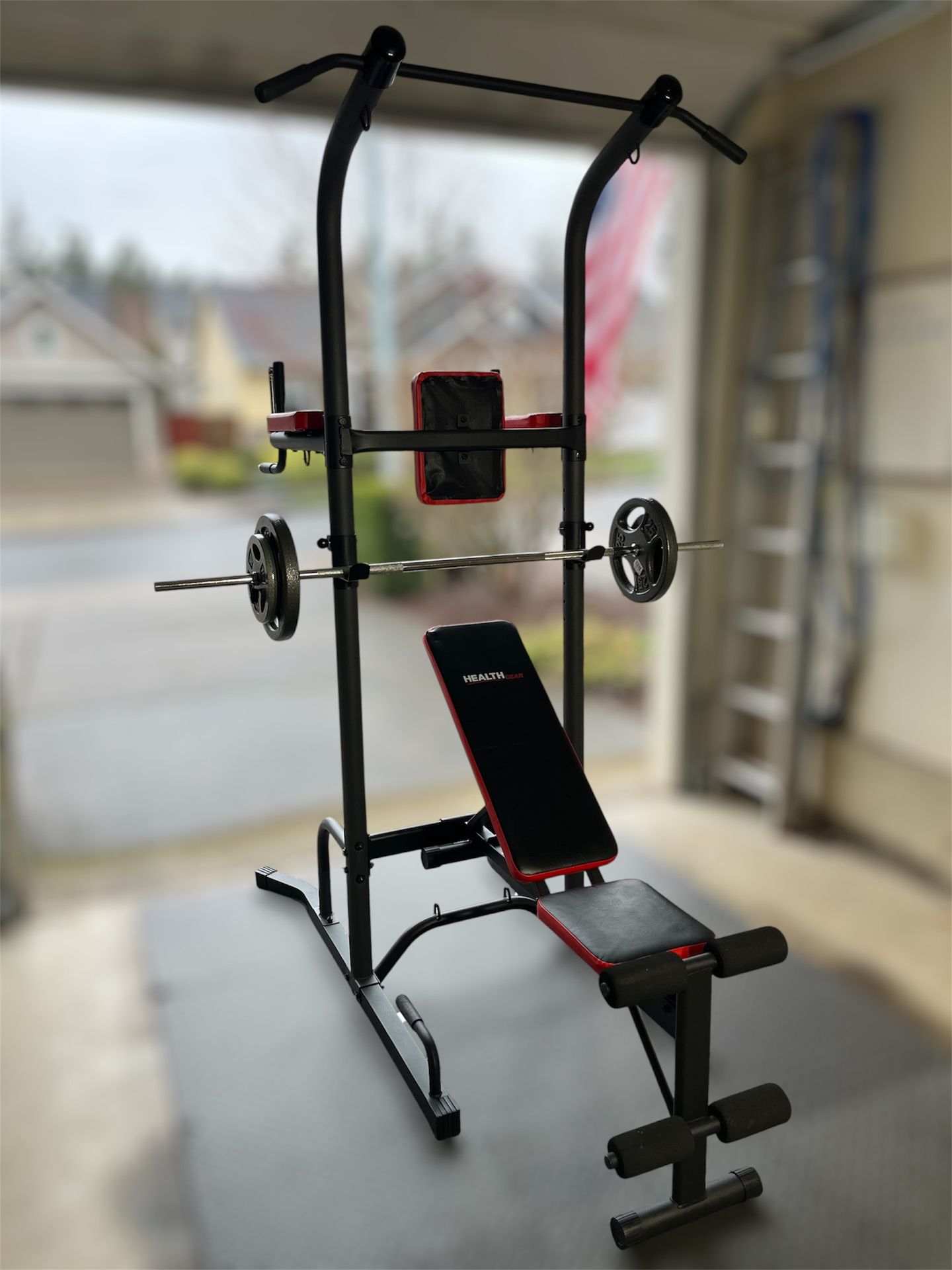 Home Gym w/ Weights – Pull Up, Bench Press, Dips