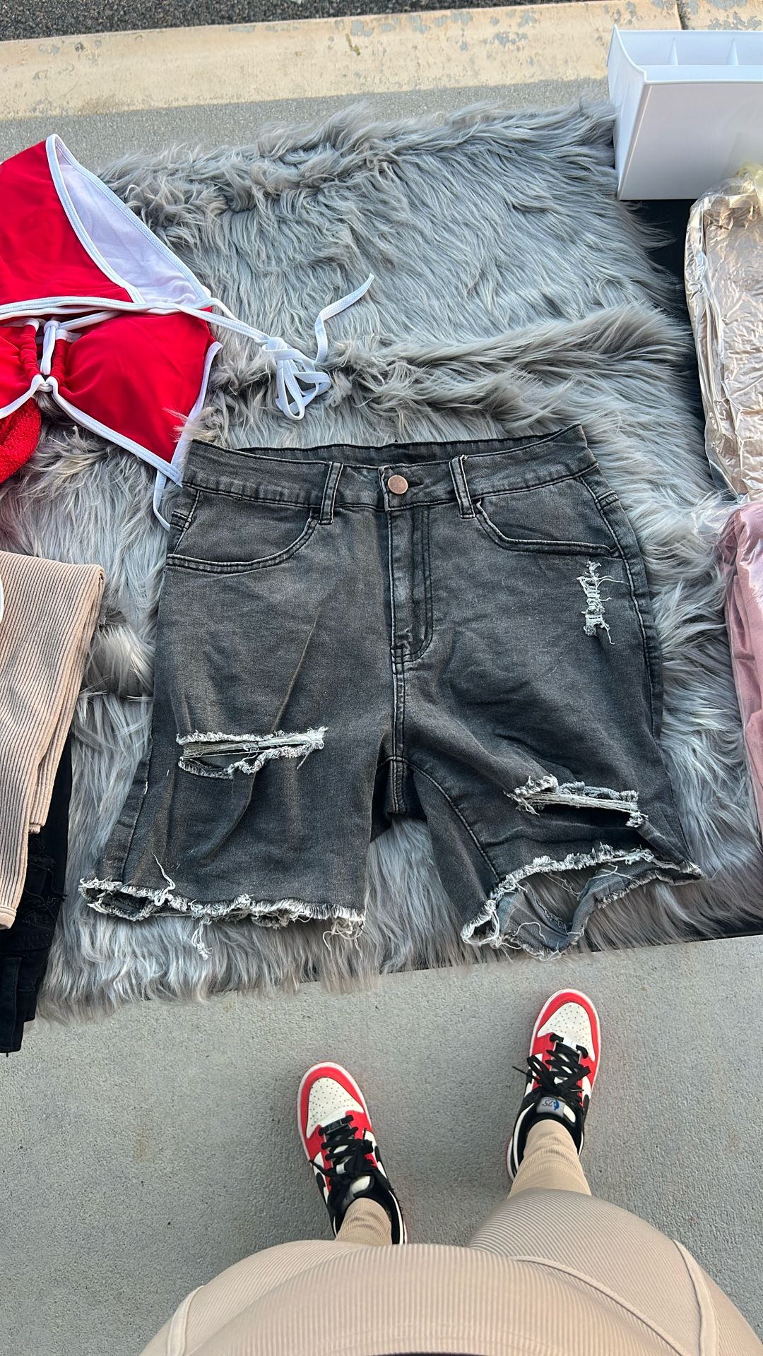 Trendy and edgy distressed shorts available in five colors—light gray, dark gray, black, and hot pink. (See page for different colors) Each pair features unique rips and details, perfect for styling up casual outfits or adding attitude to your summer look. Sizes and fits may vary—grab your favorite color before it’s gone!