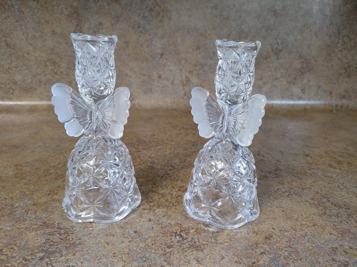 Etched crystal, vintage Hofbauer candlestick holders. Made around 1985 and about 7 in tall. Butterfly design.