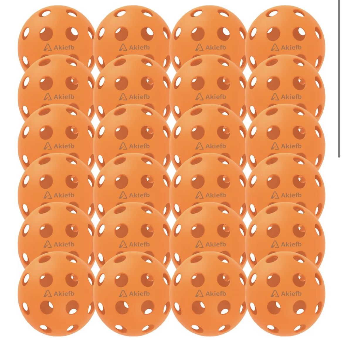 Brand:: Akiefb Pro-Grade 40-Hole Outdoor Pickleball Balls - Pro-Player Tested with Wind-Resistant Design, Built for Durability & Precision for Competitive Play. Brand new. Never been used. Still in the box. Brand Akiefb Material Thermoplastic Elastomer (TPE) Color Orange Age Range (Description) All Ages Sport Pickleball Item Diameter 2.9 Inches EXCELLENT PERFORMANCE:High elasticity and durability. Durable and sturdy than competitors, features 40 precision-drilled holes, minimize wind influence and creat a balanced flight trajectory for the ball. PREMIUM TPE CONSTRUCTION: Engineered with high-performance thermoplastic elastomer and seamless welding technology, these pickleball balls maintain structural integrity through extended intense gameplay, offering exceptional durability for frequent players. PRO-GRADE AERODYNAMICS: The scientifically designed 40-hole configuration minimizes air resistance for reliable trajectory control, delivering consistent performance in various outdoor conditions - a top choice for competitive matches. VERSATILE COURT PERFORMANCE: Delivers uniform bounce response across multiple surfaces from concrete to sports flooring, meeting professional play requirements for predictable ball behavior every time. PROFESSIONAL SPECIFICATIONS: Precisely calibrated to official size (2.9") and weight (26g) standards, suitable for players at all skill levels - from recreational practice to tournament-level competition.