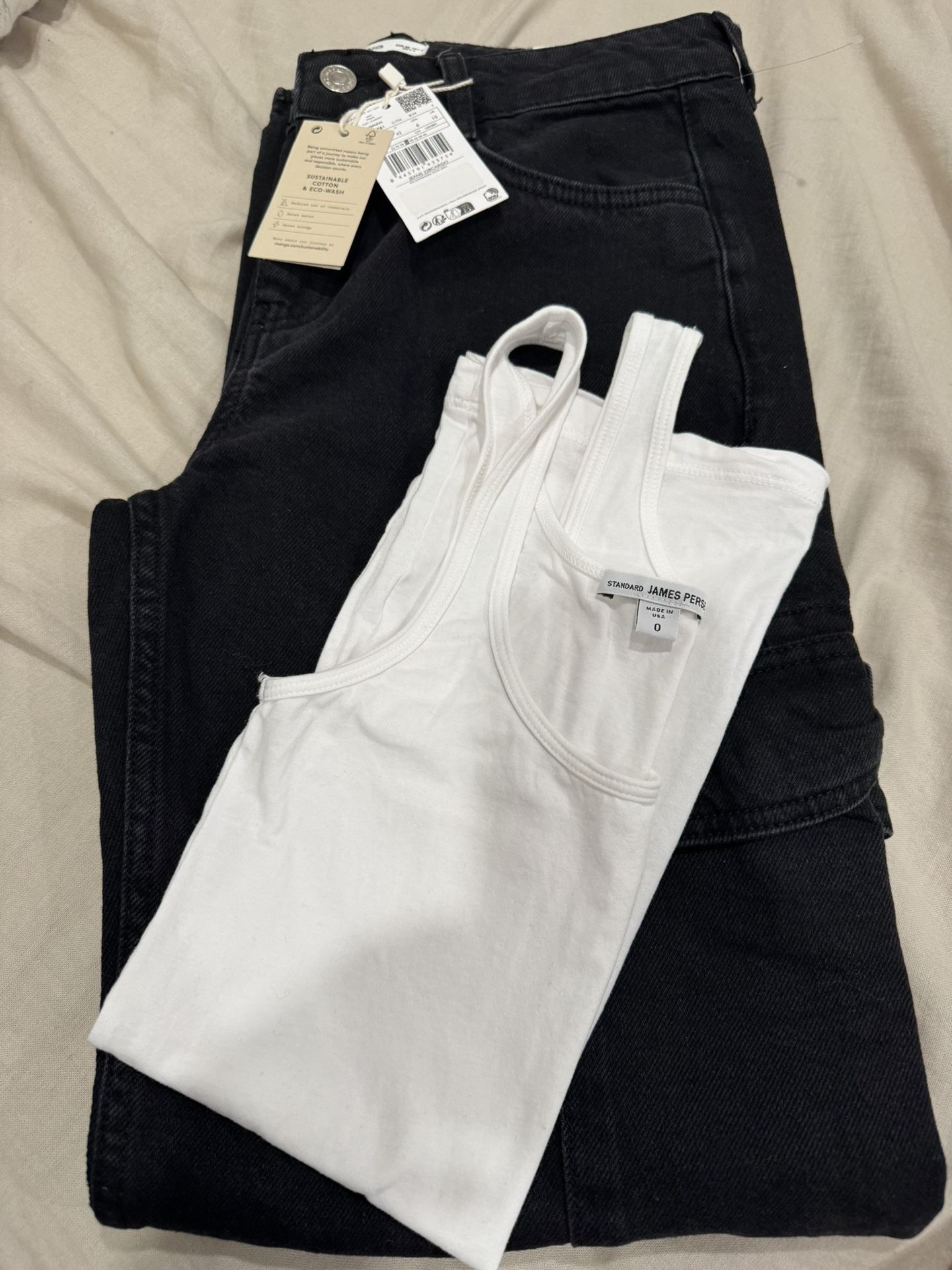 New MNG JEANS BLACK STRAIGHT FIT SIZE 6 Asking $50 I’m also selling the standar JAMES PERSE stretch cotton tank white color size 0 Asking$35 Obo