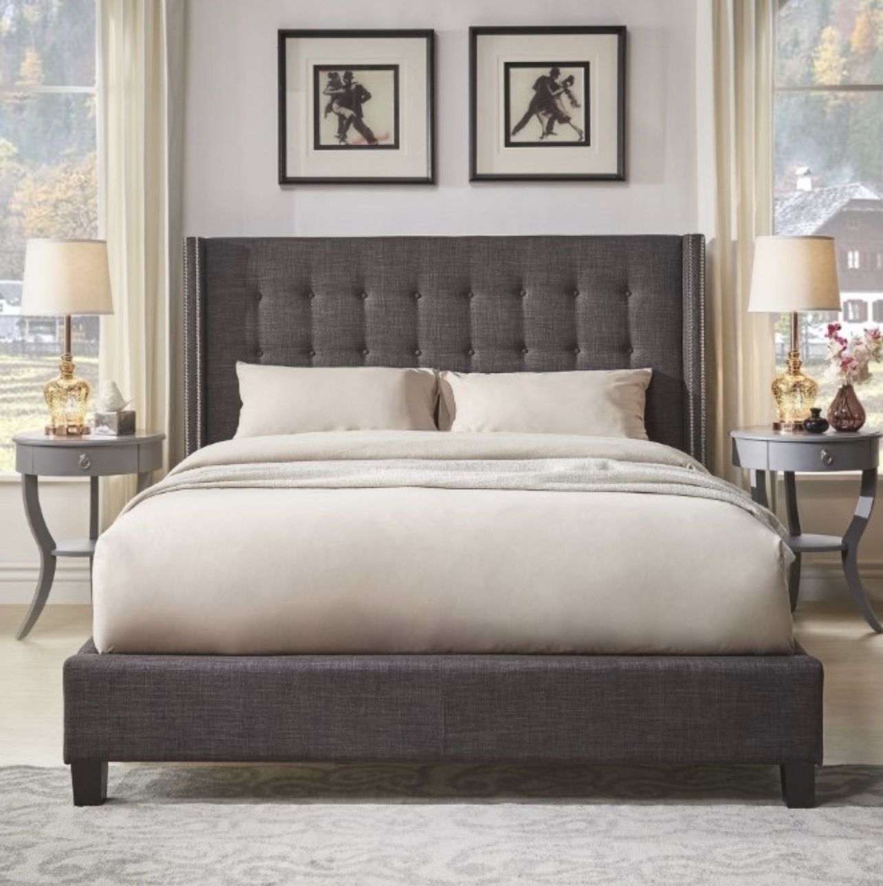 QN PLATFORM COLUMN BED IN DARK GRAY LINEN Weights & Dimensions Overall Gross Weight: 161.00 lbs Overall Net Weight: Overall Dimension: 88.6W x 70D x HB: 52.8H / FB: 13"H Same day delivery!! Pay upon delivery! EVERYTHING MUST GO!!!