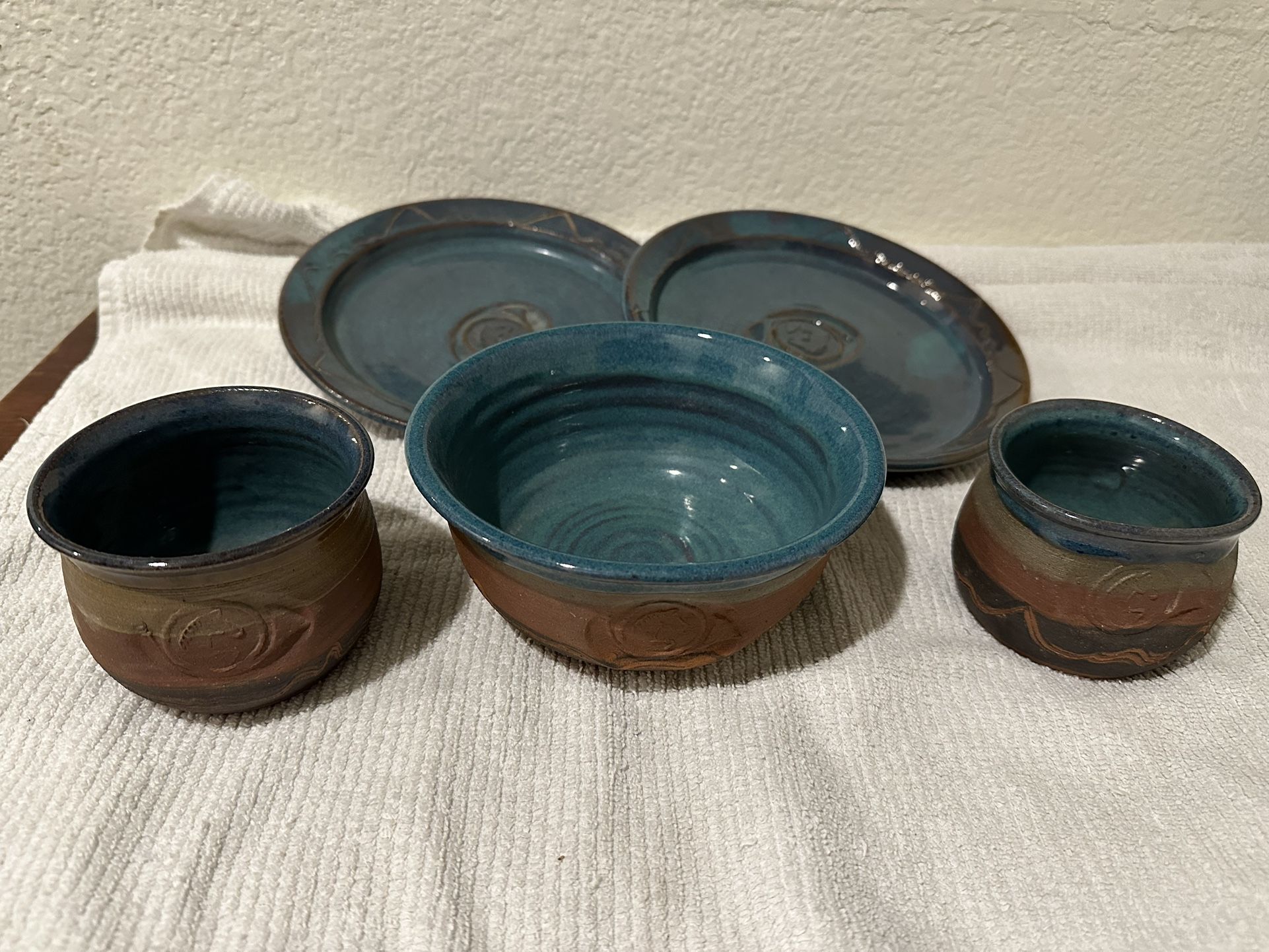 5 Piece Handmade Pottery Dinner Set - Signed