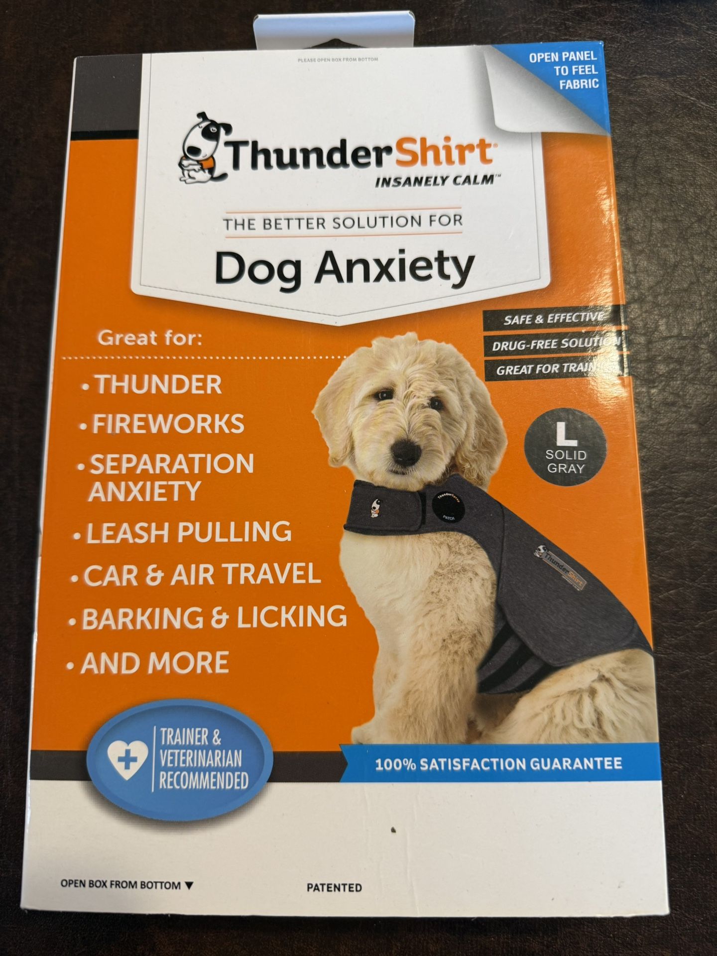 Safe and effective way to ease dog anxiety. Solid gray, size L.
