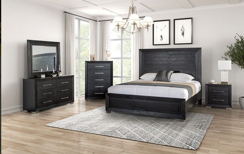 Brand New Black 4pc Queen Bedroom Set (Available In California & Eastern King)