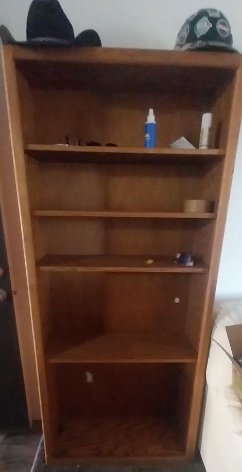 32 wide 6ft tall 1 Extra shelf included: Not seen in picture. Hole in back for cord access to electrical outlet. If interested in purchasing, Message me your name & phone number in the ap, and I will have you call Robb. Pick up required.